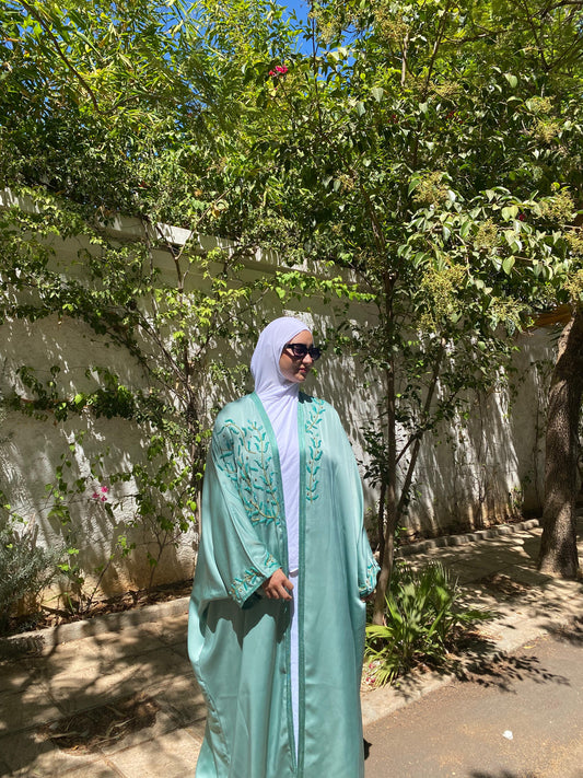 Kimono Vert d’Eau Brodé – Fraîcheur Élégante